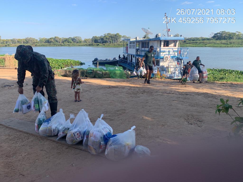 NOTA À IMPRENSA N.º 639/2021 – DATA – (26/7/2021) PMA de Corumbá e organização Ecoa, realizam a entrega de 100 cestas básicas às famílias ribeirinhas durante operação “Prolepse” de prevenção aos incêndios Campo Grande (MS) – A