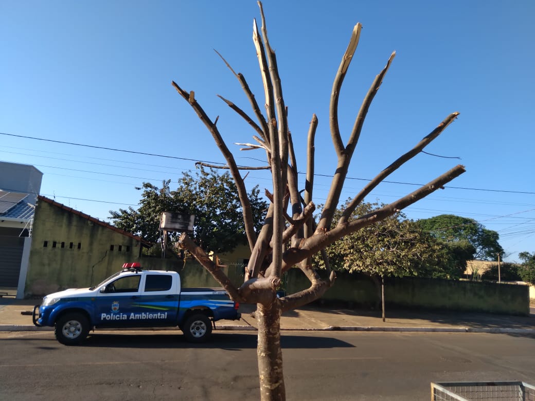 Campo Grande (MS) – Depois de receberem denúncias, Policiais Militares Ambientais de Aquidauana deslocaram-se até a região central na cidade Anastácio, onde estaria ocorrendo poda radical de árvore, em uma calçada em frente à residência do