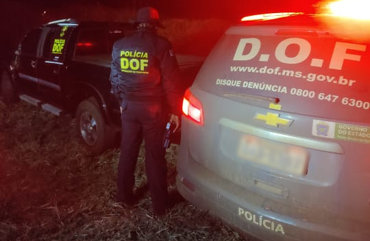 Dourados (MS), 19 de julho – Policiais do Departamento de Operações de Fronteira (DOF) recuperaram, na noite de ontem, uma camionete GM 10 Executiva de cor preta e placas falsas de Campo Grande (MS). A ação ocorreu em virtude da Operação Hórus,