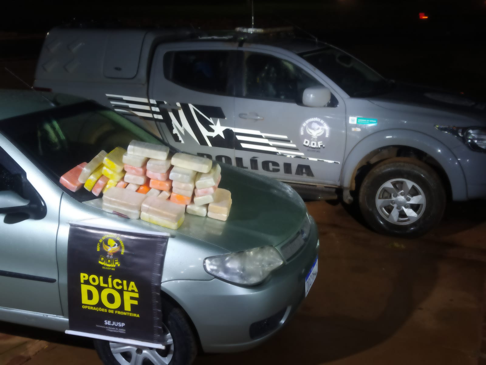 Dourados (MS), 19 de julho – Policiais do Departamento de Operações de Fronteira (DOF) apreenderam, na noite de sábado, um veículo VW Gol vermelho carregado com 36 quilos de pasta base de cocaína. A ação ocorreu em virtude da Operação Hórus,