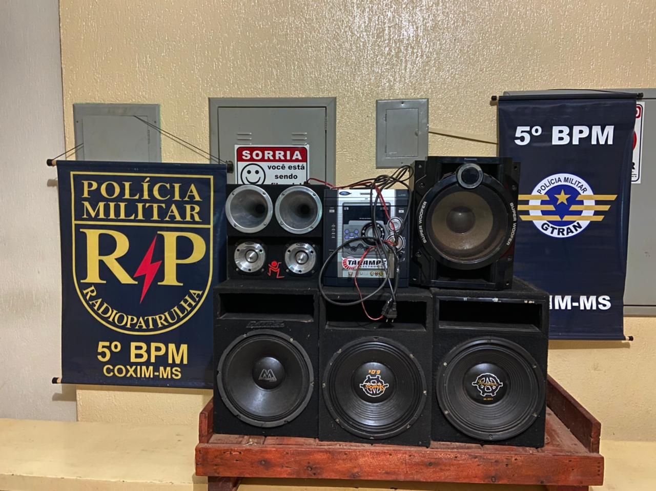 Coxim (MS) – A Polícia Militar prendeu na noite de ontem (18/07), um jovem de 26 anos por perturbação do sossego e apreendeu aparelhagem de som em Coxim. A Guarnição de Rádio Patrulha foi acionada através do telefone 190 informando que na Rua