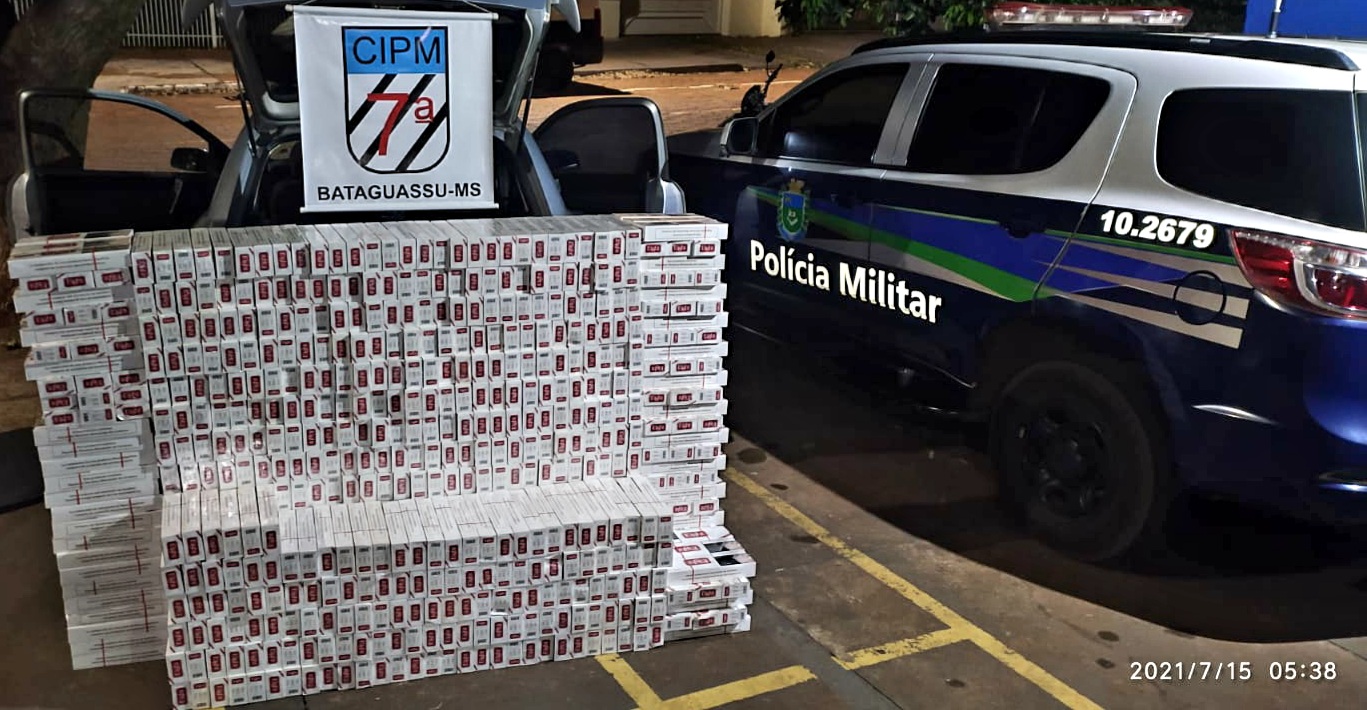 Bataguassu (MS) – Na madrugada de quarta-feira (14), a guarnição da Polícia Militar em Bataguassu apreendeu um veículo carregado com mais de 700 pacotes de cigarros contrabandeados do Paraguai e prendeu o condutor pelo crime de Contrabando. Os