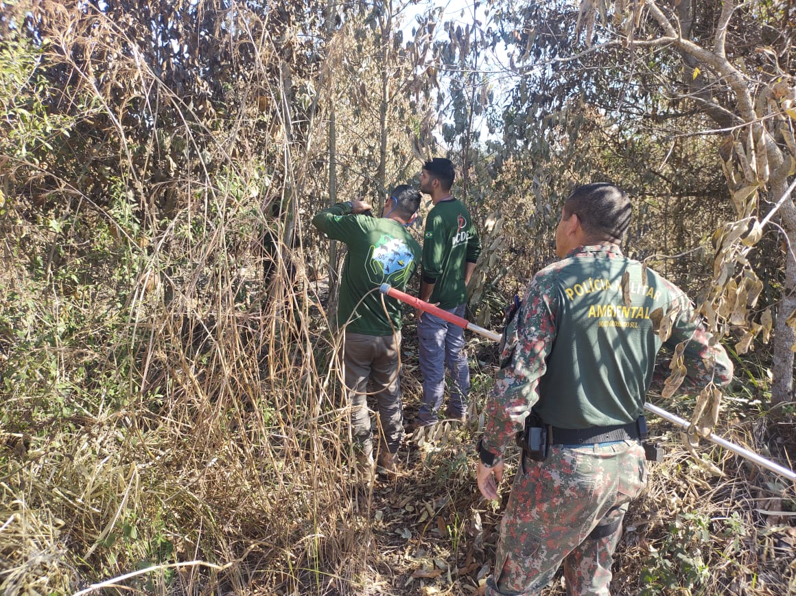 Campo Grande (MS) – Uma equipe da Polícia Militar Ambiental de Jardim, que participa do Grupo de Resgate Técnico Animal Cerrado Pantanal (GRETAP-MS), criado no último dia 16 de abril, para resgate de animais vítimas dos incêndios, está trabalhando,