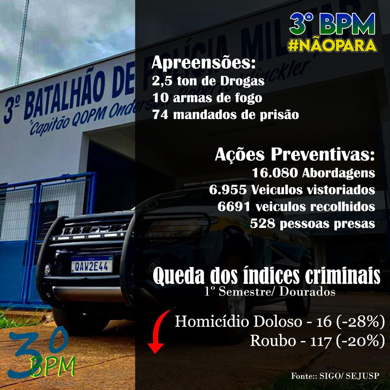 Em um relatório estatístico pormenorizado emitido pela Superintendência de Inteligência em Segurança Pública da Secretaria de Estado de Justiça e Segurança Pública – SEJUSP/MS, e encaminhado a todas as unidades da Polícia Militar do Estado de Mato