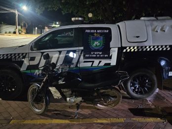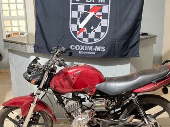 Coxim (MS) –A Polícia Militar recuperou na tarde deste sábado (27) uma motocicleta que havia sido furtada no último dia 21 de setembro, em Coxim. O veículo foi localizado em meio à vegetação, próximo a um Córrego, na zona rural do município. A