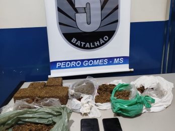 Coxim (MS) –A Polícia Militar prendeu um homem de 23 anos e um jovem de 19 anos por tráfico de drogas e associação para o tráfico, durante uma operação realizada no início da noite deste sábado (27), no município de Pedro Gomes. A ação teve