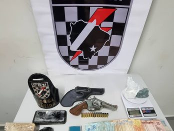 Coxim (MS): A Polícia Militar na tarde de ontem (01/08), prendeu um jovem de 24 anos, por tráfico de drogas e posse irregular de arma de fogo em Coxim. A Força Tática chegou até o autor, após ser acionada para investigar uma denúncia de ameaça com uso