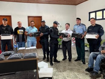 Coxim (MS): A Polícia Militar na manhã de hoje (04/07), recebeu novo fardamento que serão destinados aos policiais do Grupamento de Trânsito de Coxim. O evento, que ocorreu com grande entusiasmo e participação das autoridades locais, foi marcado pela