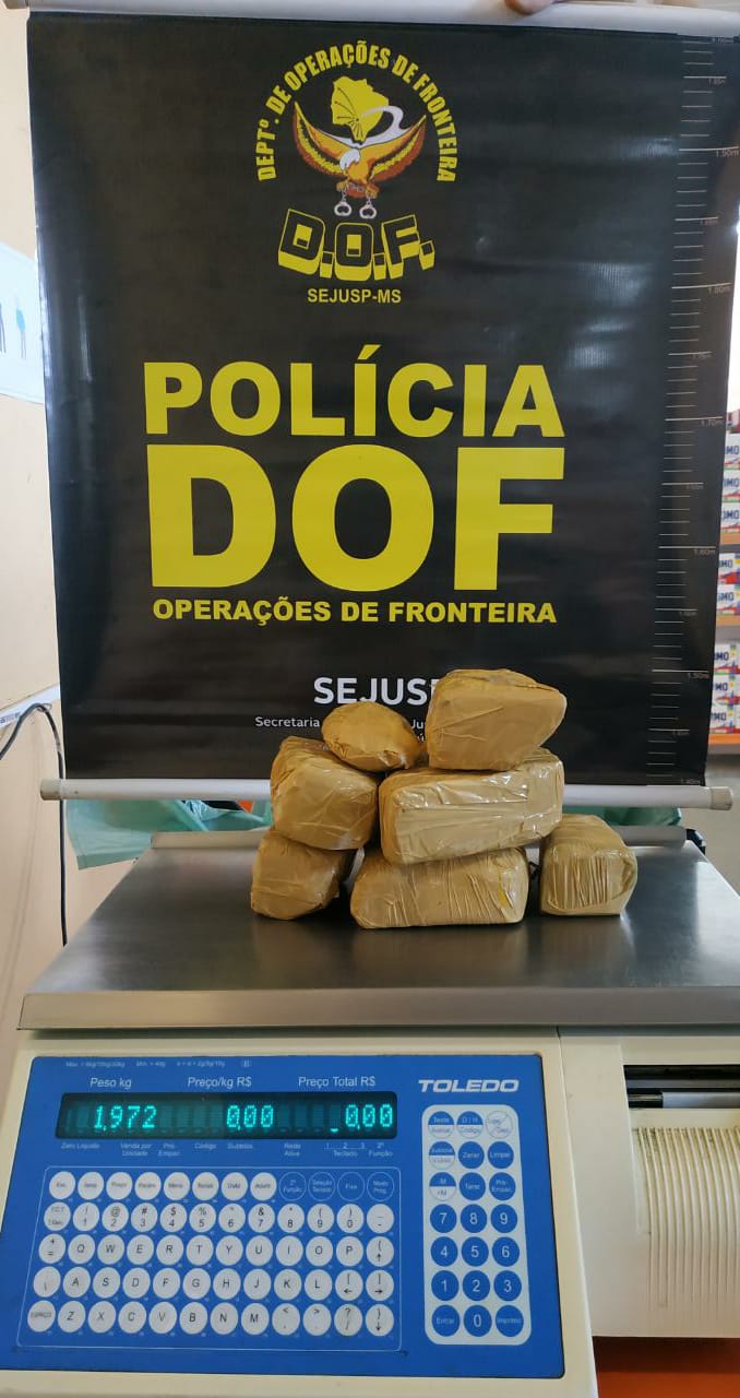Laguna Carapã (MS), 5 de julho – Policiais do Departamento de Operações de Fronteira (DOF) apreenderam, na noite de ontem (domingo) dois fardos de maconha, com peso total de 72,6 quilos distribuídos em 91 volumes prensados. A ação ocorreu em virtude