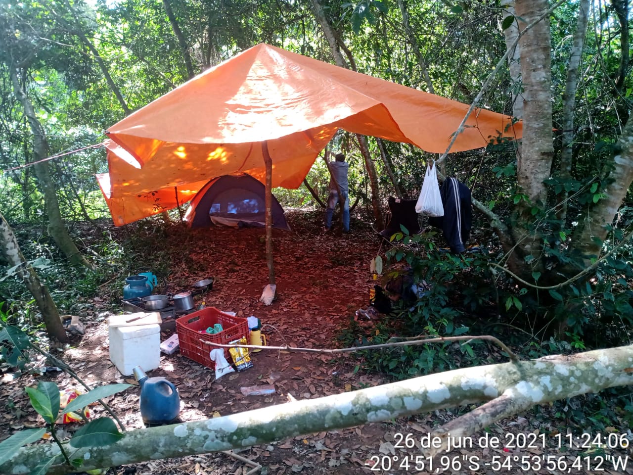 Campo Grande (MS) – Durante fiscalização preventiva à pesca predatória no rio Jatobá, Policiais Militares Ambientais de Rochedo localizaram hoje (26) no início da tarde, um acampamento ilegal para a pesca, na região próxima a ponte na estrada
