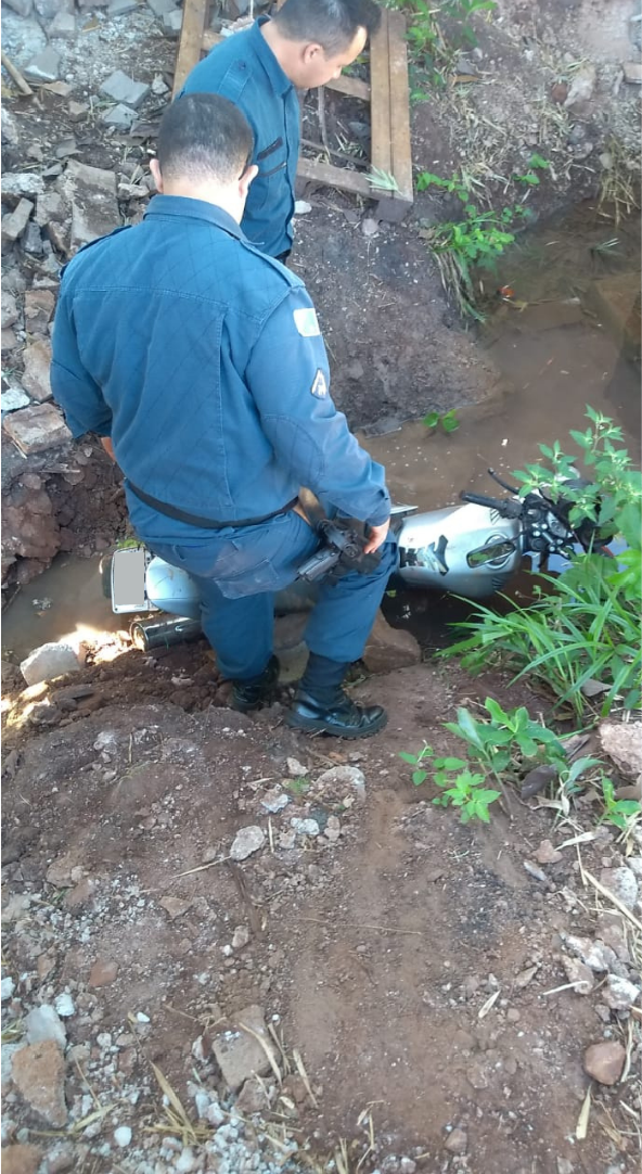 Maracaju (MS) – Na data desta terça-feira (16/03), a guarnição da polícia militar foi acionada por meio do telefone emergencial 190 para atender uma ocorrência, onde o solicitante informou que havia uma motocicleta abandonada em uma valeta de água,