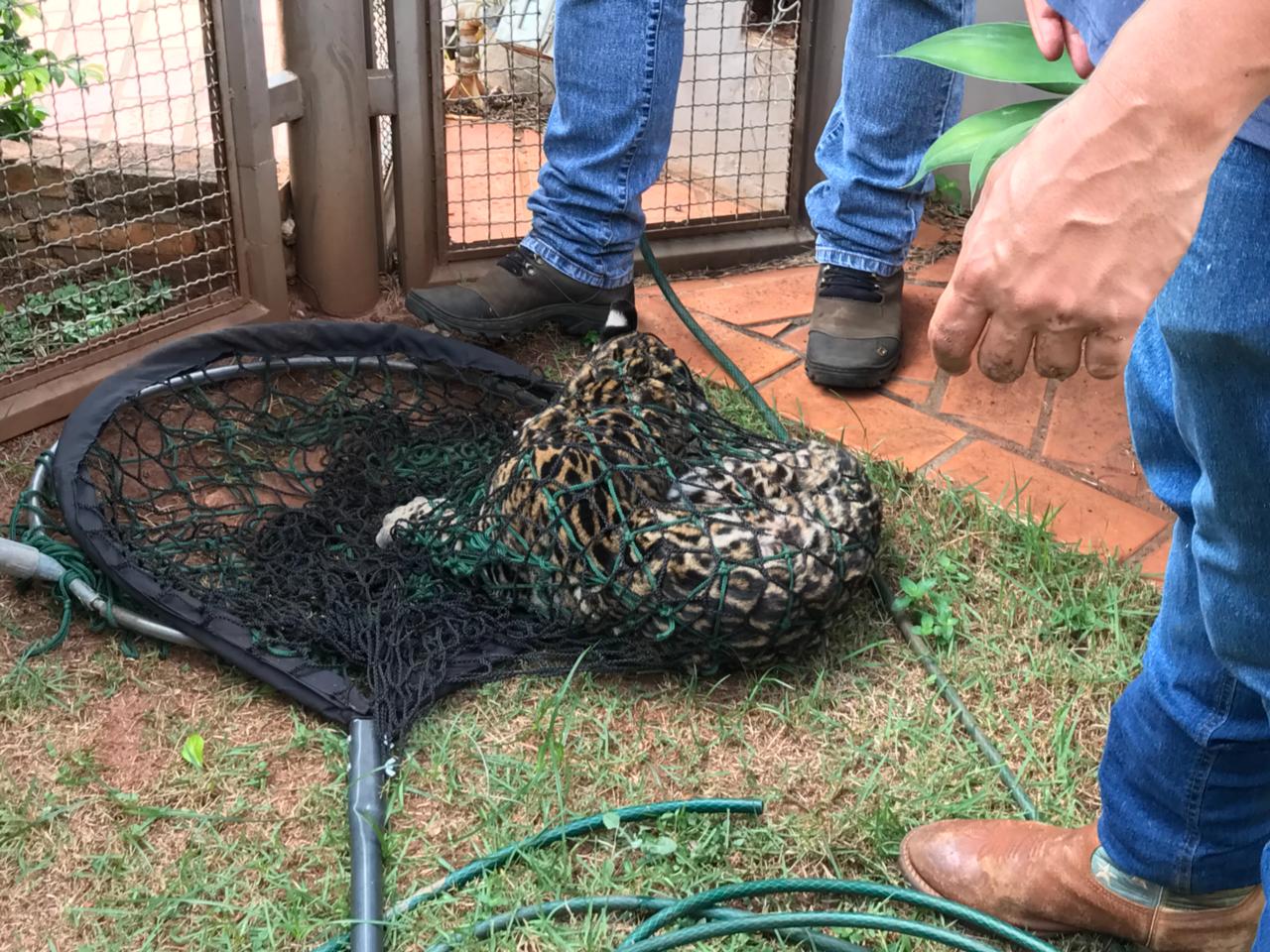Campo Grande (MS) – Hoje (16) pela manhã, uma moradora do bairro cidade Jardim acionou os Policiais Militares Ambientais de Campo Grande, em virtude do aparecimento no quintal de sua residência de um animal da espécie Felis pardalis, ou Leopardus