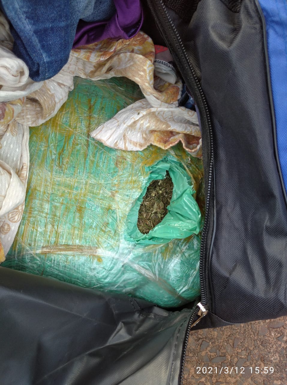 Ponta Porã (MS) – Na tarde desta sexta-feira (12/03), Policiais Militares realizaram a abordagem a um ônibus de passageiros que fazia linha intermunicipal e, durante vistoria no bagageiro inferior, localizaram uma bolsa de nylon na cor azul a qual