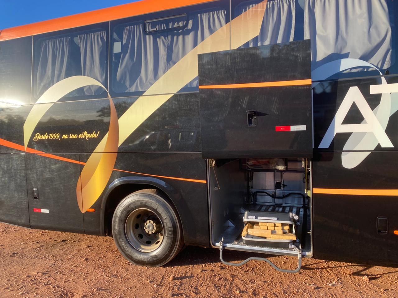 Ponta Porã (MS) – No início da noite deste sábado (27/02), Policiais Militares realizaram a abordagem a um ônibus de transportes de passageiros. Durante a vistoria no compartimento de bagagens, os policiais localizaram uma mala de cor preta