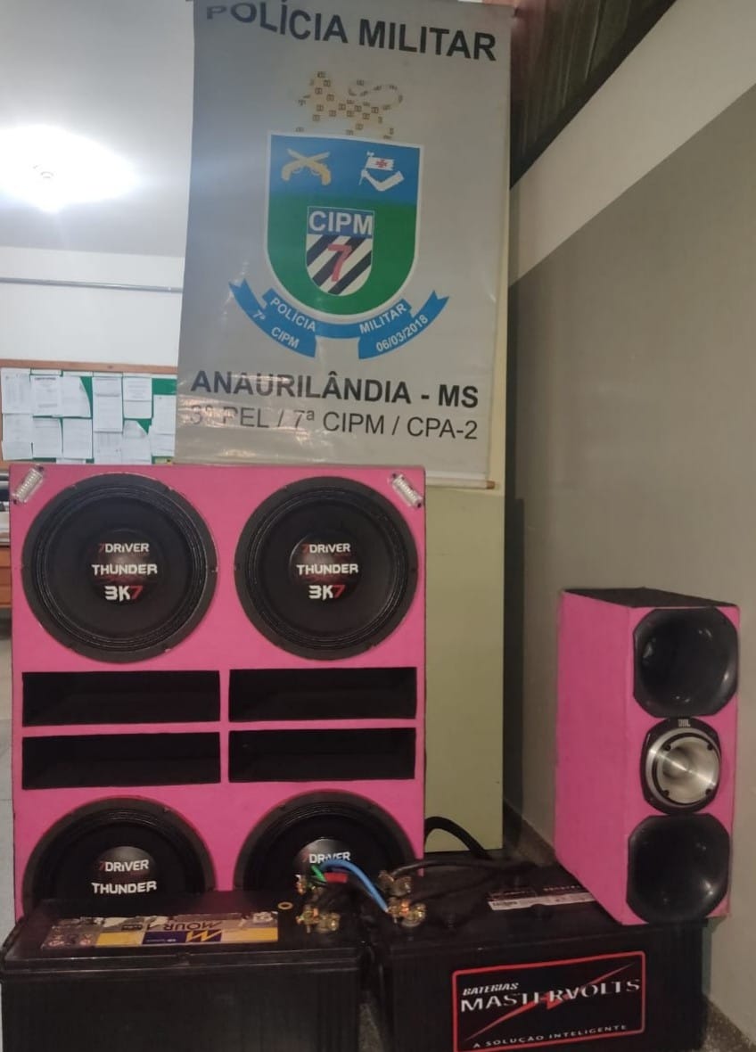 Anaurilândia (MS) – Na noite de sábado (20), a guarnição da Polícia Militar em Anaurilândia apreendeu uma aparelhagem sonora e encaminhou um homem de 41 anos à Delegacia pelo delito de perturbação do sossego. Os policiais receberam diversas