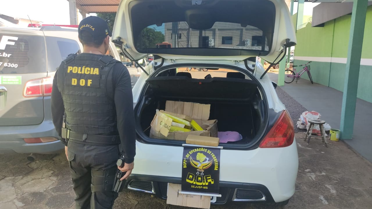 Iguatemi (MS), 19 de fevereiro – Policiais do Departamento de Operações de Fronteira (DOF) apreenderam, na tarde de sexta-feira, um veículo Peugeot 308 de cor branca, carregado com 45 volumes prensados de maconha, com peso total de 36 quilos. A ação