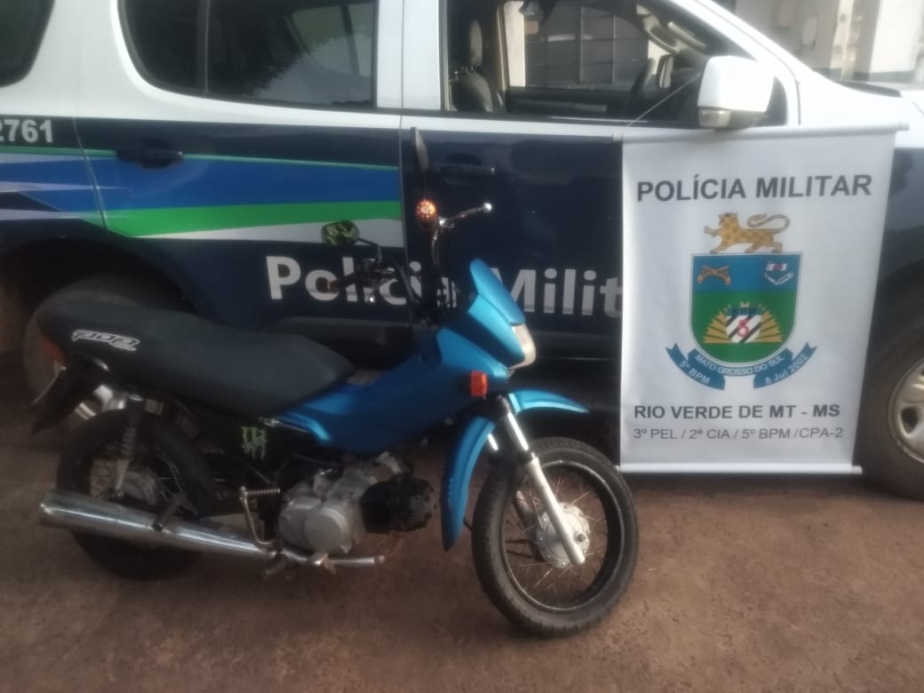 Coxim (MS) – A Polícia Militar na tarde de ontem (19/02), apreendeu uma motocicleta irregular conduzida por adolescente de 12 anos em Rio Verde de MT/MS. A Guarnição de Serviço realizava rondas pela Avenida Porfírio Gonçalves quando viram um