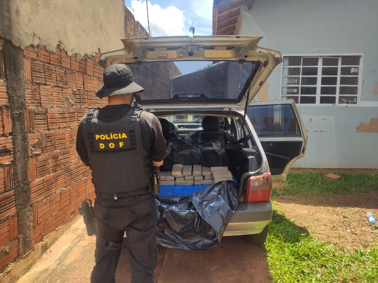 Amambai (MS), 10 de fevereiro – Policiais do Departamento de Operações de Fronteira (DOF) apreenderam, na manhã de hoje, um veículo GM Corsa Classic de cor azul carregado com 624 Kg de maconha e 33 Kg de skank. A ação ocorreu em virtude da Operação