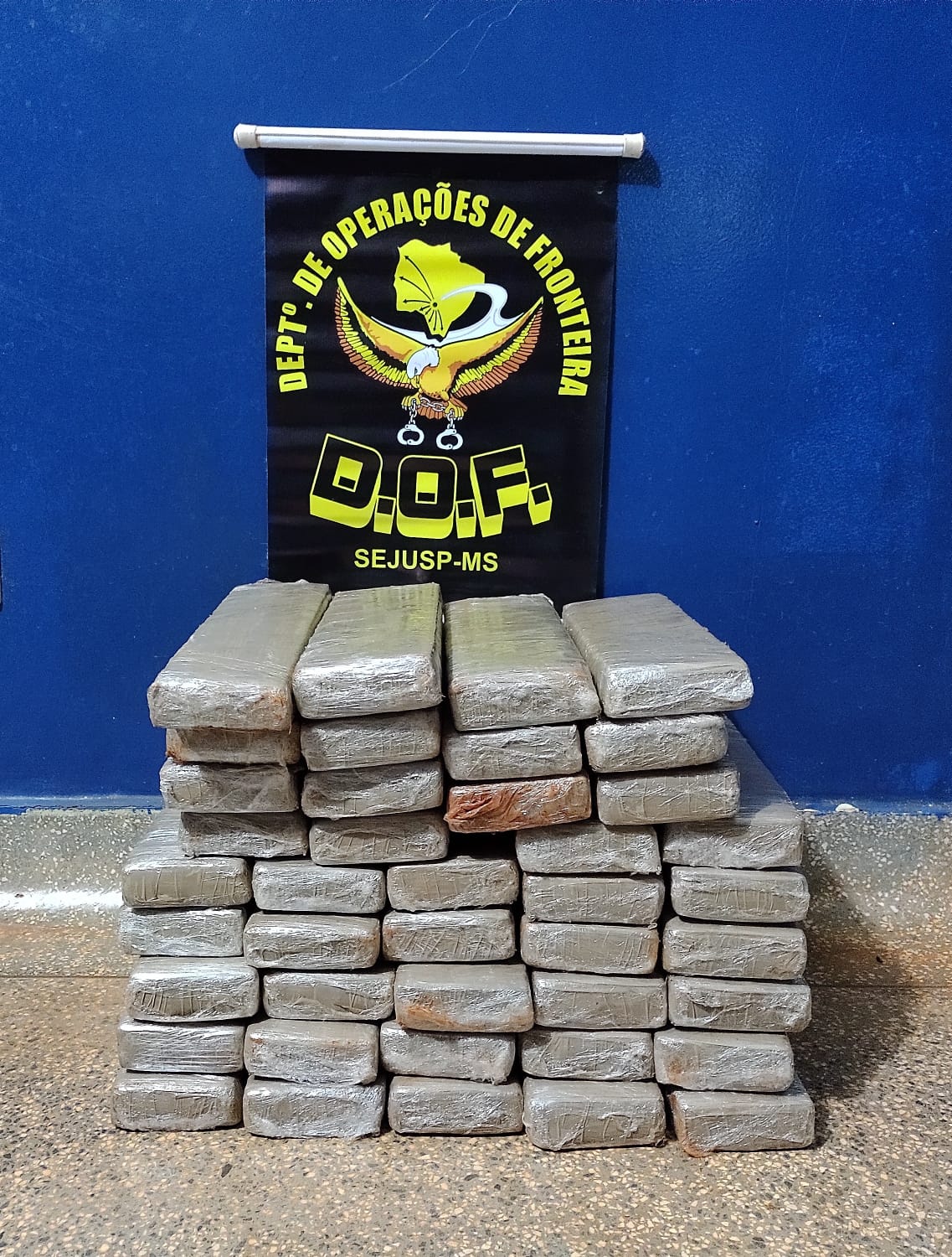 Nova Alvorada do Sul (MS), 1º de fevereiro – Policiais do Departamento de Operações de Fronteira (DOF) apreenderam, na madrugada desta segunda-feira, um veículo GM Onix de cor preta carregado com 41 volumes prensados de maconha, com peso total de 36,9