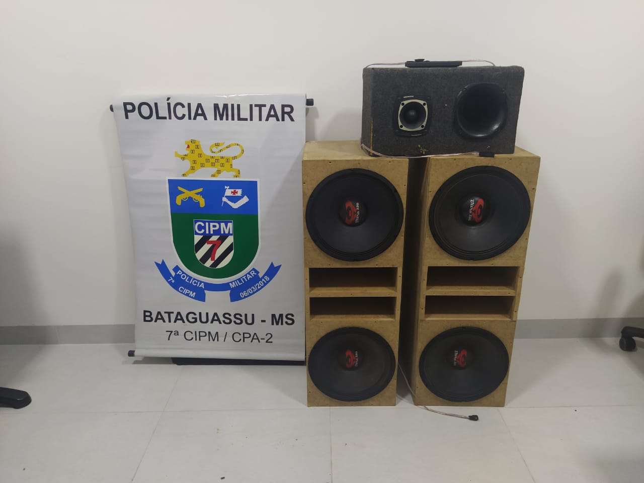 Bataguassu (MS) – Por volta das 23:40h de quinta-feira (24), a guarnição da Polícia Militar em Bataguassu apreendeu caixas de som que estavam instaladas num veículo e prendeu um jovem de 21 anos pelos delitos de perturbação e resistência. Os