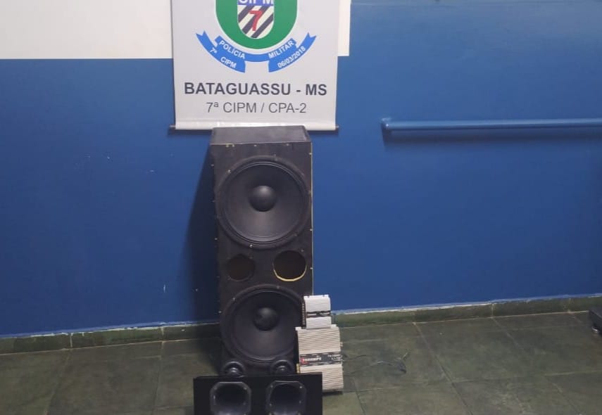 Bataguassu (MS) – Por volta das 23:15h de sábado (12), a guarnição da Polícia Militar em Bataguassu apreendeu uma aparelhagem sonora e encaminhou um homem de 25 anos à Delegacia pelo delito de perturbação da tranquilidade. Os policiais receberam