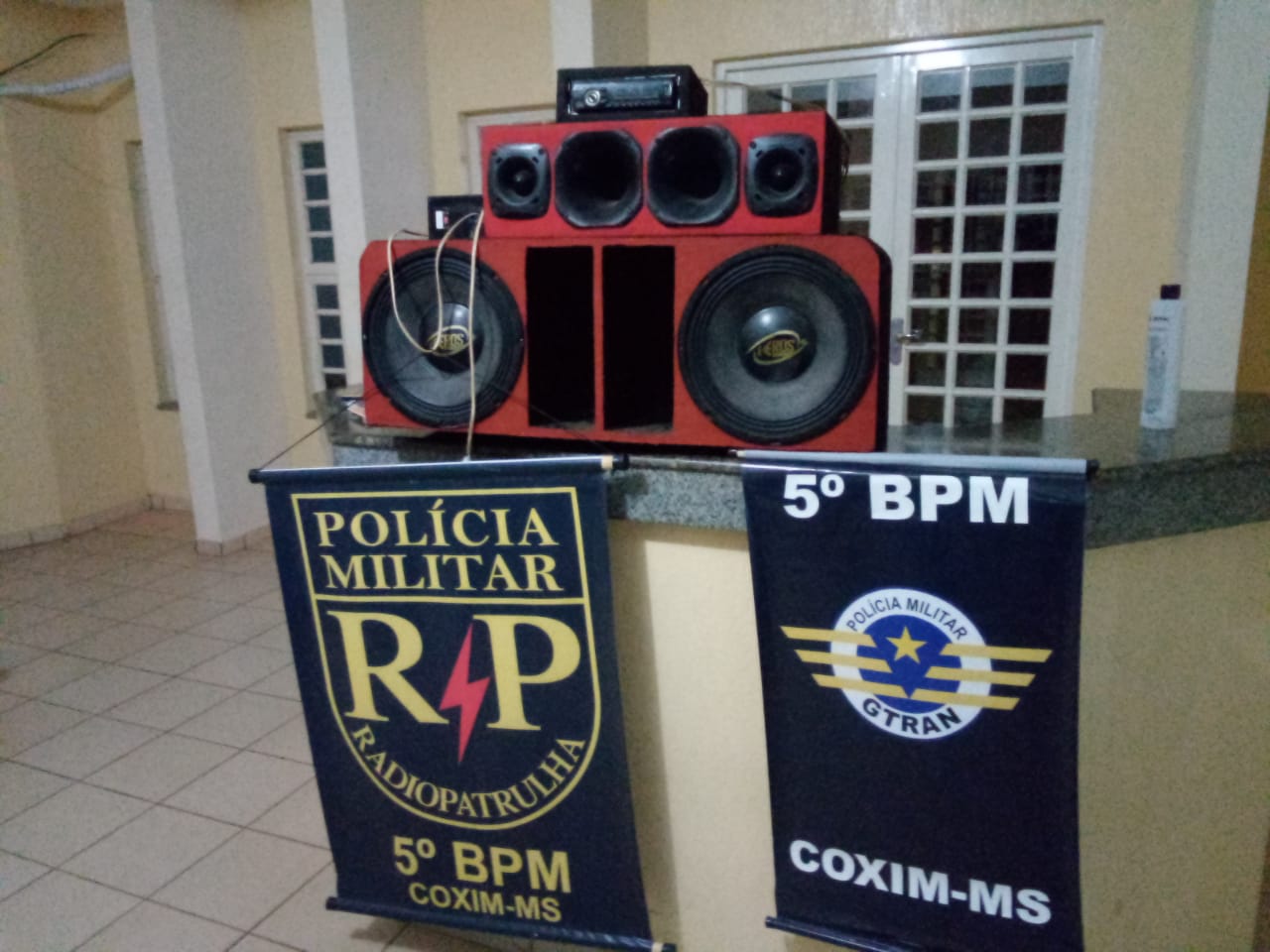 Coxim (MS) – A Polícia Militar na noite de ontem (04/12), aprendeu uma aparelhagem de som prendeu jovem de 21 anos em Coxim. A guarnição de serviço foi acionada através do 190 informando que um som automotivo estava perturbando o sossego. Imediatamente