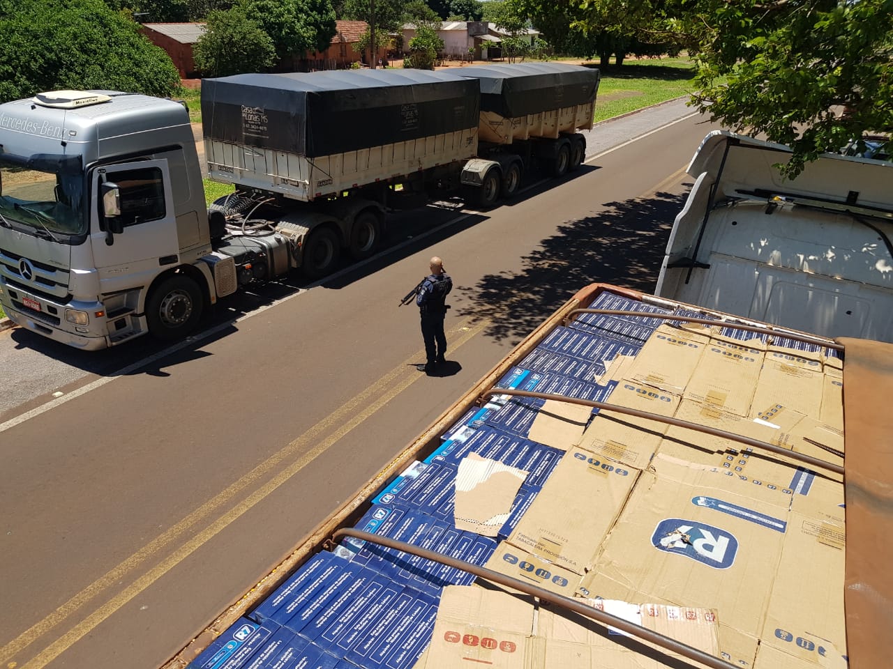 Jardim (MS) – Por volta das 11h00min de hoje (19), uma guarnição de serviço da Polícia Militar realizava policiamento ostensivo e preventivo no perímetro urbano do distrito de Boqueirão, quando abordou duas carretas, sendo uma delas bitrem, que