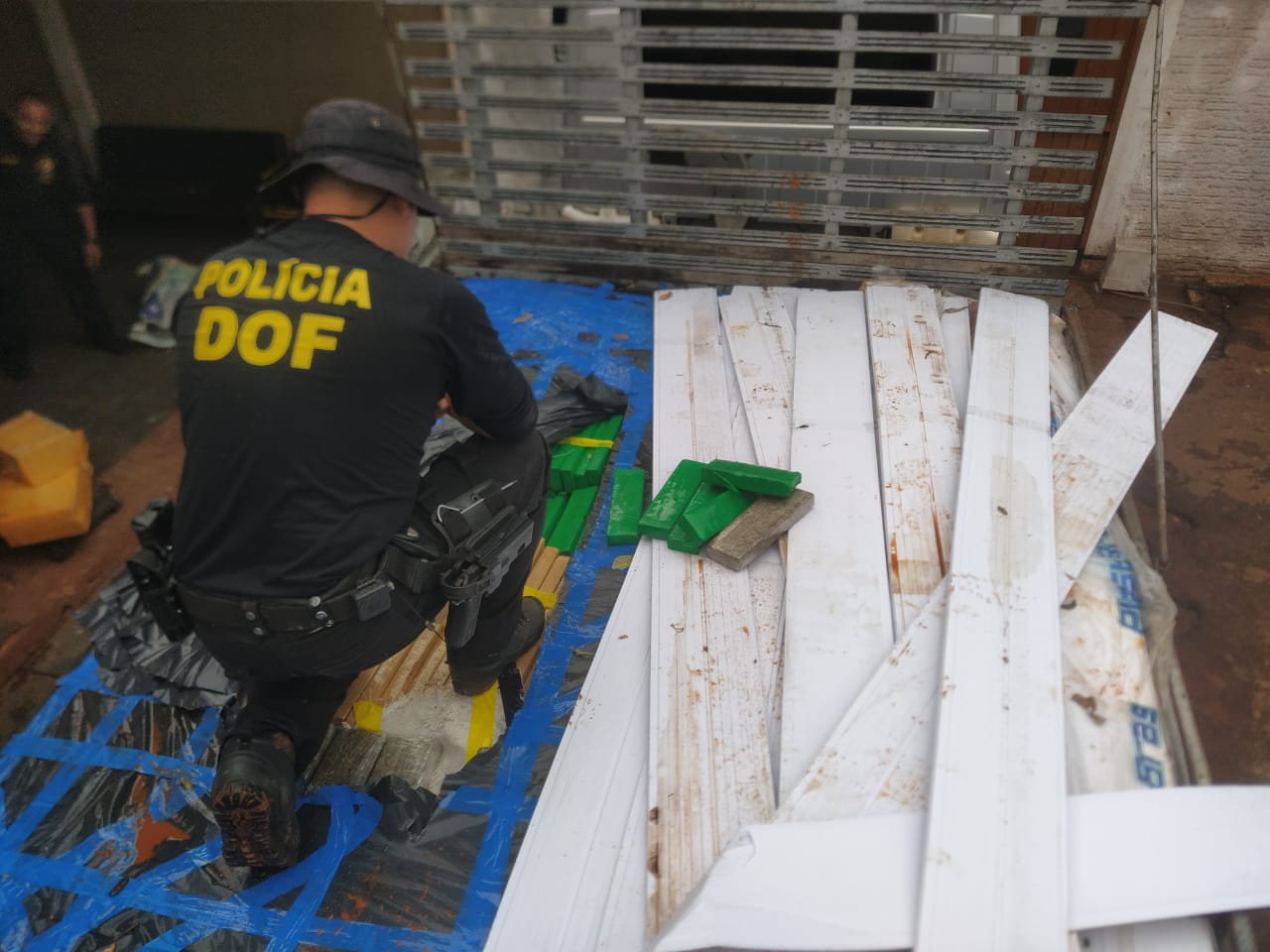 Dourados (MS), 18 de novembro – Policiais do Departamento de Operações de Fronteira (DOF) apreenderam, na tarde desta quarta-feira, um caminhão VW 6.90 de cor cinza carregado com 3.431,5 quilos de maconha e 25,6 quilos de skank. A ação ocorreu em