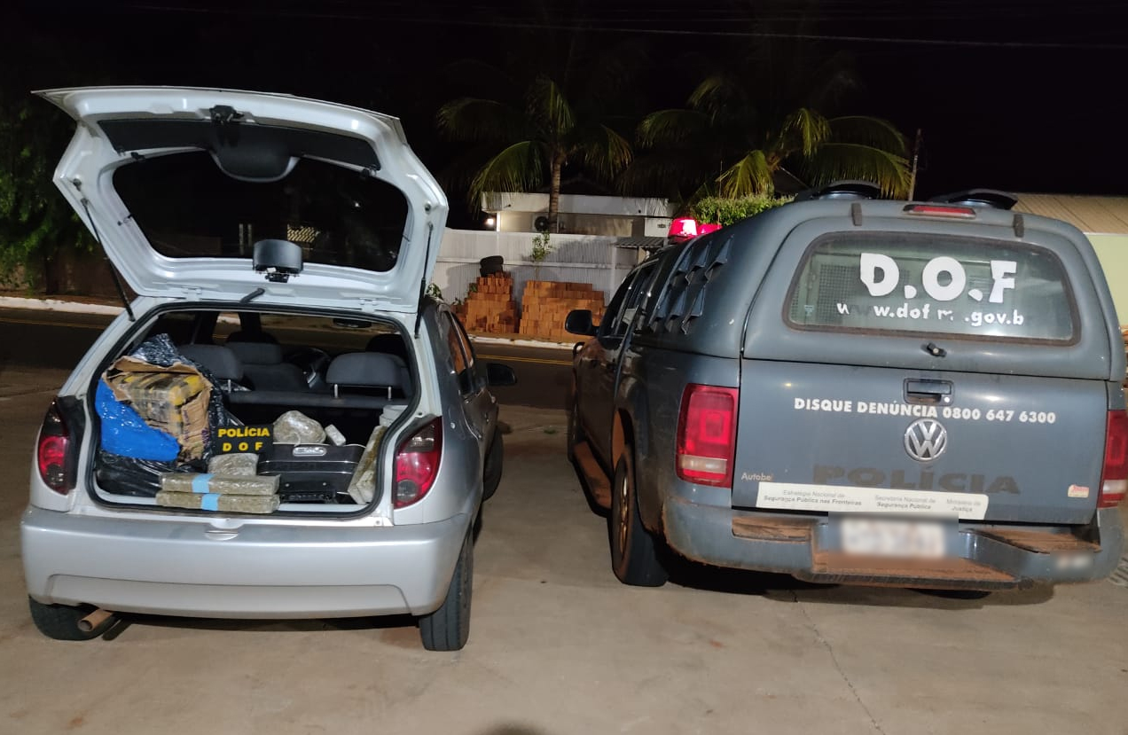 Bataguassu (MS), 18 de novembro – Policiais do Departamento de Operações de Fronteira (DOF) apreenderam, na madrugada de hoje, um veículo GM Celta carregado com 56 volumes prensados de maconha, com peso total de 56 quilos, mais um volume de skank com