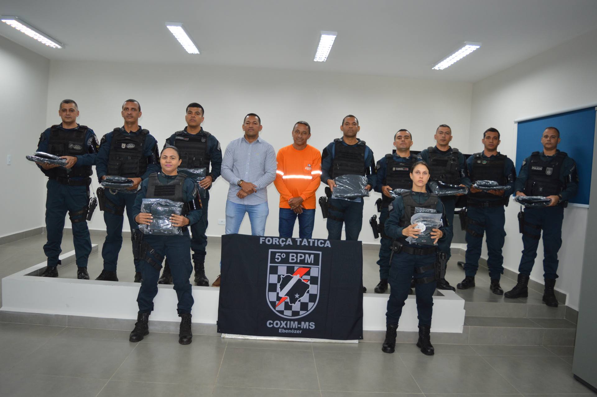 Coxim (MS): Os Policiais Militares receberam na manhã de hoje (26/05), fardamento em Coxim. Os fardamentos que foram doados ao Policiais Militares da Força Tática do município veio através de uma Emenda Impositiva do Presidente da Câmara de Coxim, o