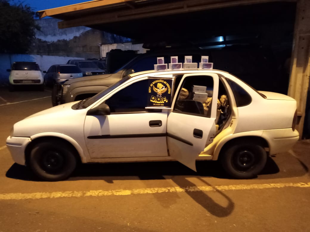 Amambai (MS), 31 de agosto – Policiais Militares do Departamento de Operações de Fronteira (DOF) apreenderam, na tarde desta segunda-feira, um veículo GM Corsa de cor branca carregado com 59 aparelhos de telefone celular da marca Xiaomi; 07 volumes de