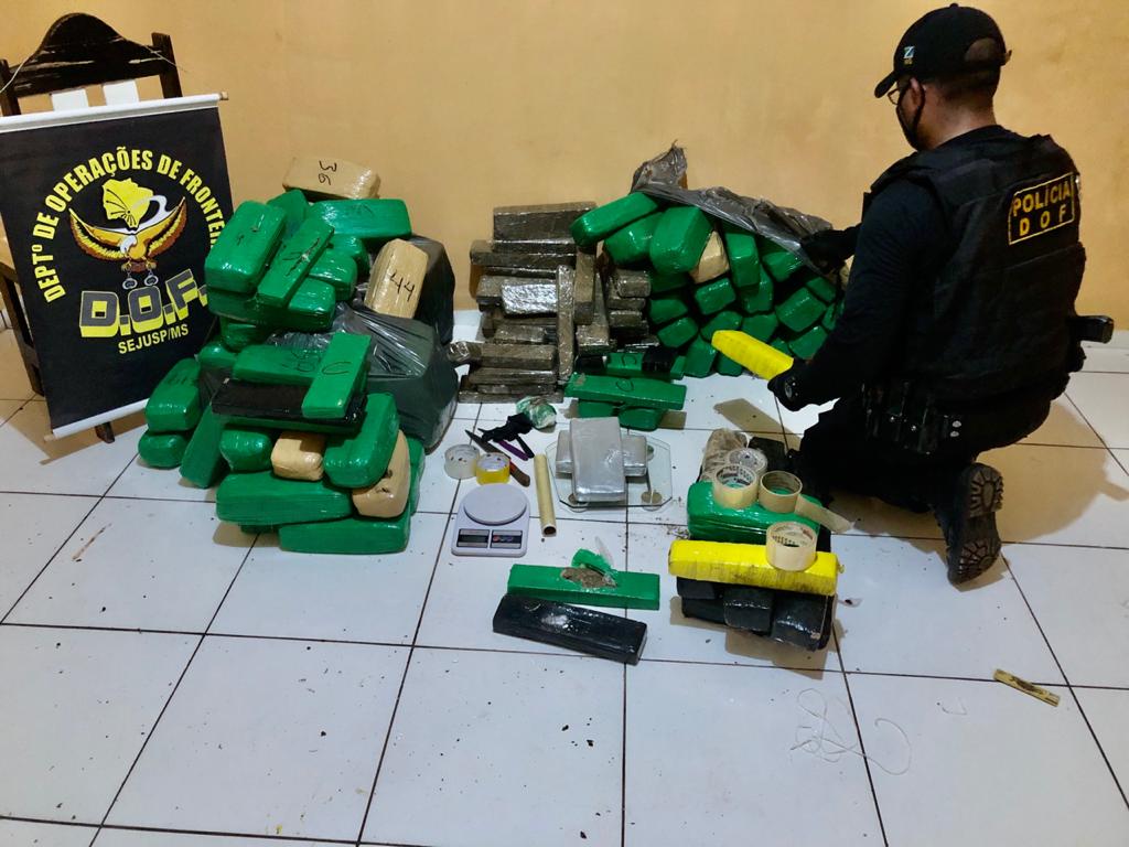 Dourados (MS), 31 de agosto – Policiais Militares do Departamento de Operações de Fronteira (DOF) apreenderam, na noite desta segunda-feira, 150 quilos de maconha e 2,2 quilos de cocaína. A ação ocorreu em virtude da Operação Hórus, parceria da