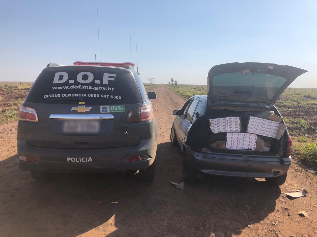 Ponta Porã (MS), 25 de agosto – Policiais Militares do Departamento de Operações de Fronteira (DOF) apreenderam na tarde de ontem, um veículo GM Corsa carregado com 550 pacotes de cigarros contrabandeados do Paraguai. A ação ocorreu em virtude da