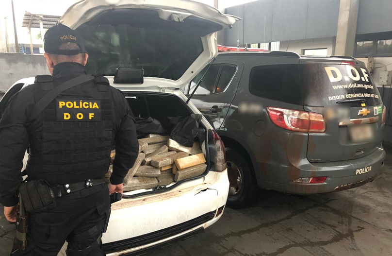 Dourados (MS), 16 de agosto –Policiais Militares do Departamento de Operações de Fronteira (DOF) apreenderam na manhã de domingo, um veículo VW Gol de cor prata e placas de Rolândia (PR) carregados com 497 volumes prensados de maconha, com peso total