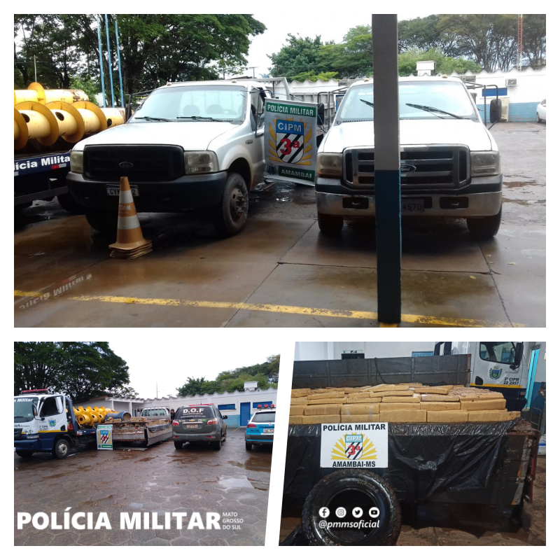 3ª CIPM – Na manhã desta terça-feira (18) equipes de Rádio Patrulha da Polícia Militar de Amambai apreenderam mais de 2 mil quilos de maconha que eram transportadas em camionetas que supostamente eram usadas na atividade agrícola. Durante policiamento