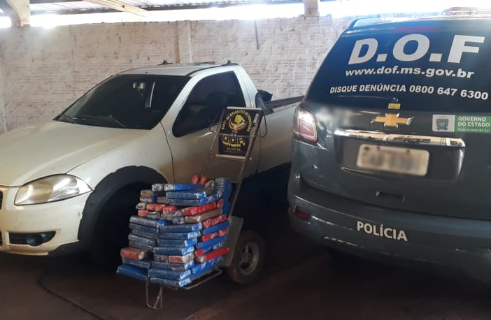 Dourados (MS), 30 de junho – Policiais Militares do Departamento de Operações de Fronteira (DOF) apreenderam, na manhã desta quarta-feira, uma camionete GM S10 de cor branca e placas falsas de Dourados (MS) carregada com 1.791 quilos de maconha. A ação
