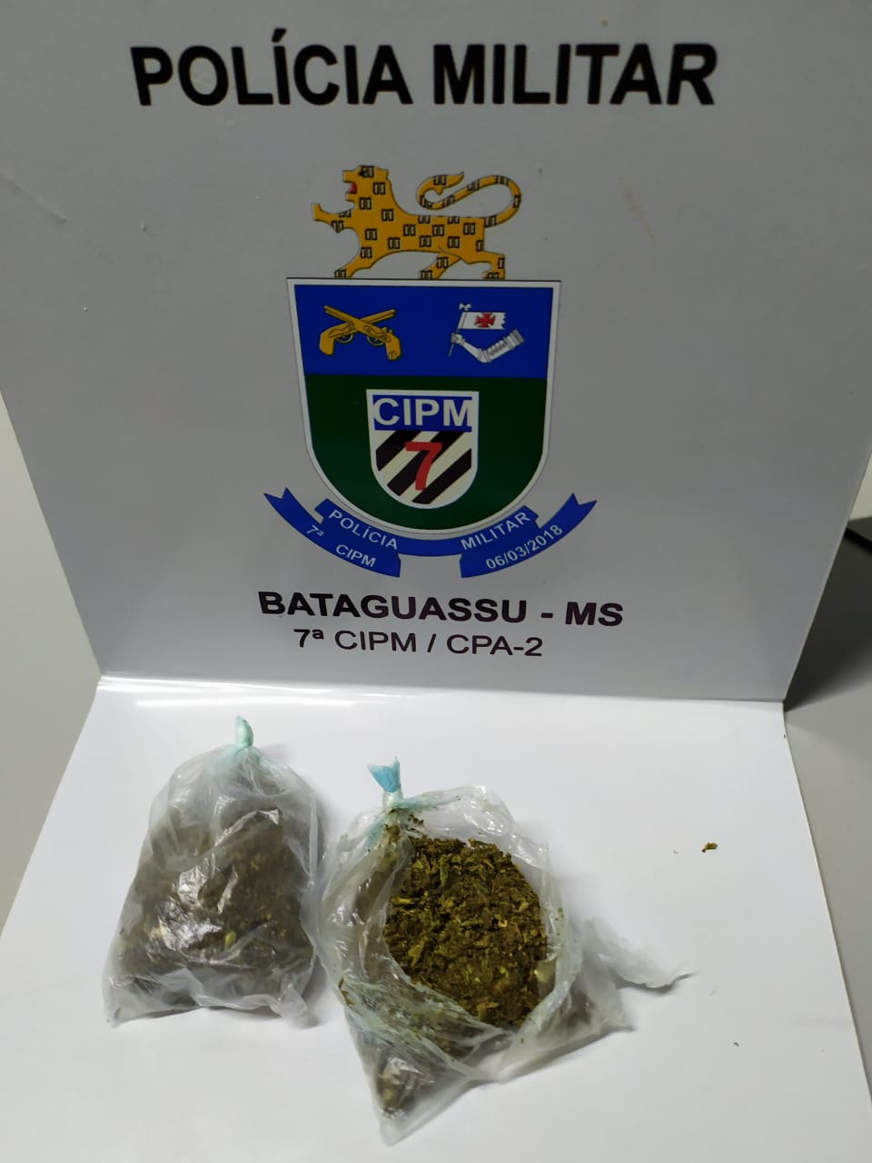 Bataguassu (MS) – Na tarde desta quinta-feira (04/06), a guarnição da Polícia Militar em apoio a AGEPEN, apreendeu duas porções de Maconha que seriam entregues a um detento do Estabelecimento Penal de Bataguassu. Os policiais foram acionados pelos