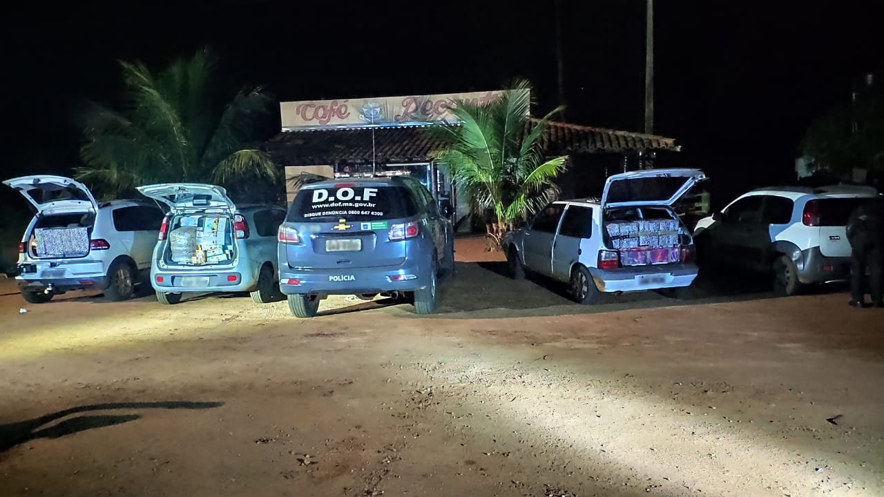 Ponta Porã (MS), 15 de maio – Policiais Militares do Departamento de Operações de Fronteira (DOF) apreenderam, na noite de sexta-feira, quatro veículos carregados com essência para narguilé; produtos para maquiagem; roupas e acessórios para
