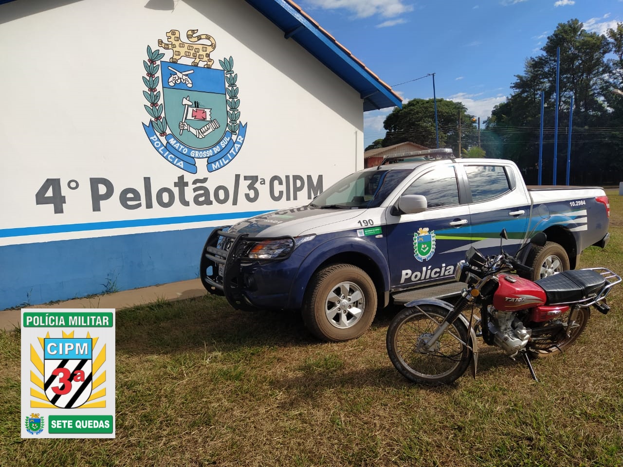 3ª CIPM Amambai – Na noite desta segunda-feira (16) a equipe de Rádio Patrulha da Polícia Militar de Sete Quedas recuperou uma motocicleta de origem estrangeira que havia sido furtada momentos antes e prendeu o suspeito do furto, um homem de 23 anos. A