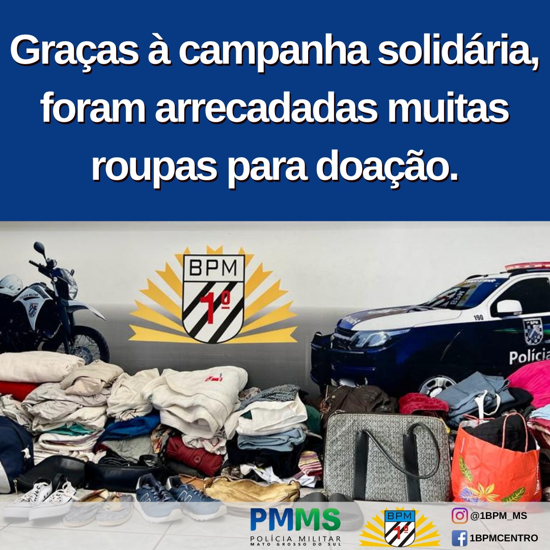O 1º Batalhão da Polícia Militar (1º BPM) ajudou na campanha solidária de arrecadação de roupas para doação durante o inverno. Como ponto de coleta, a iniciativa contou com a colaboração de diversos doadores, que generosamente contribuíram com a