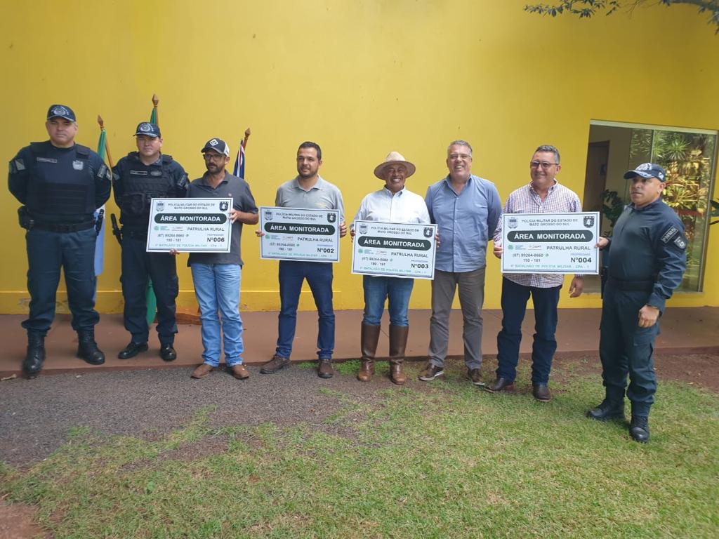 Ponta Porã (MS) – Na manhã desta sexta-feira (05/05), o 4º Batalhão de Polícia Militar e a Coordenadoria do Policiamento Rural da PMMS, realizaram a entrega das placas de monitoramento nas propriedades rurais cadastradas no Programa Campo Mais Seguro,