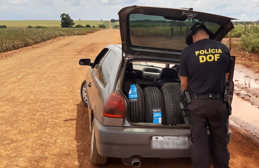 Caarapó (MS), 16 de fevereiro – Policiais do Departamento de Operações de Fronteira (DOF) apreenderam, na tarde de ontem (domingo), um veículo VW Gol cinza, com placas de Maracaju (MS), carregado com 40 pneus para veículo e 10 pneus para motocicleta.