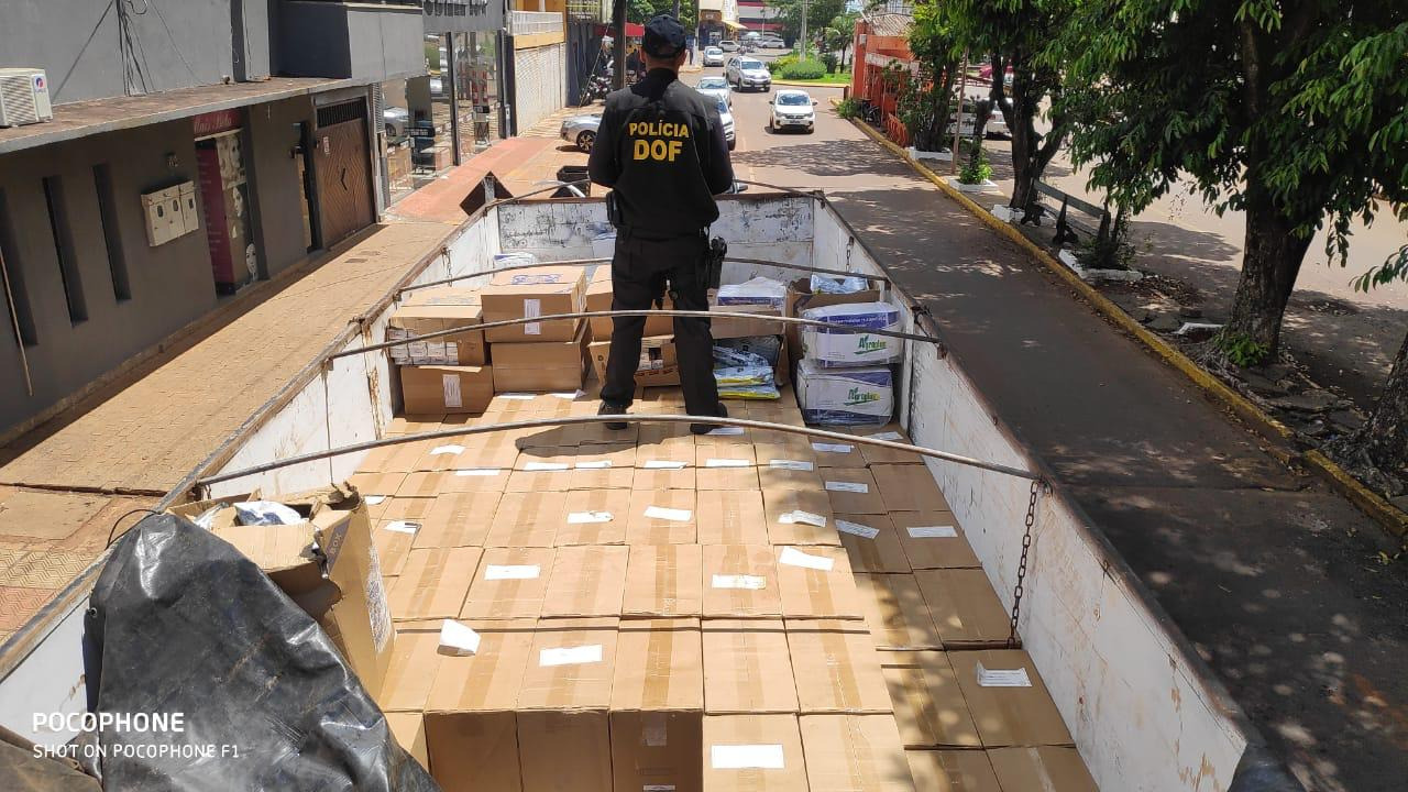 Antônio João (MS), 8 de fevereiro – Policiais do Departamento de Operações de Fronteira (DOF) apreenderam, na tarde de sábado, um caminhão Mercedes-Benz 1418 branco, com placas de Araras (SP), carregado com doze mil pacotes de cigarros e 30 caixas