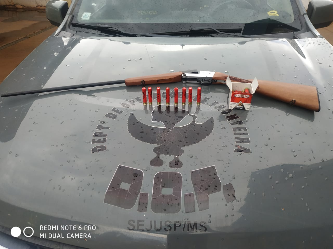 Bataguassu (MS), 30 de novembro – Policiais do Departamento de Operações de Fronteira (DOF) apreenderam, na manhã de sábado, uma espingarda calibre .36 com 25 munições, do mesmo calibre, intactas. A apreensão ocorreu durante o bloqueio policial para