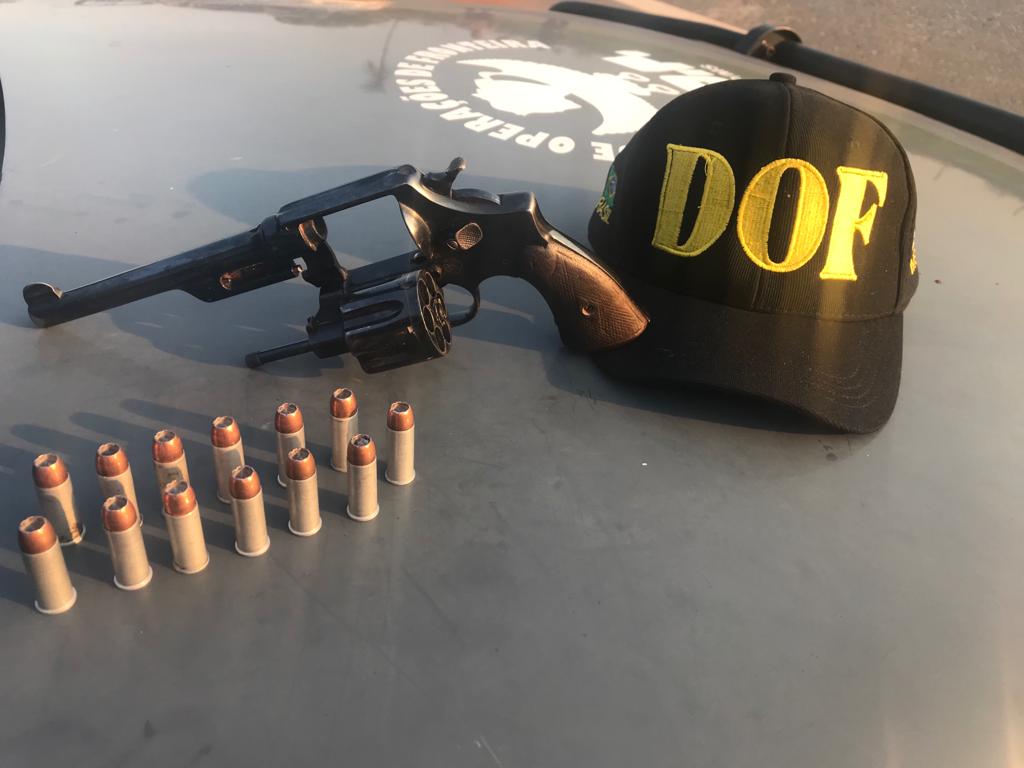 Bonito (MS), 25 de novembro – Policiais do Departamento de Operações de Fronteira (DOF) apreenderam, na manhã desta segunda-feira, um revólver calibre .44, sem numeração e 13 munições, do mesmo calibre, intactas. A apreensão ocorreu durante uma