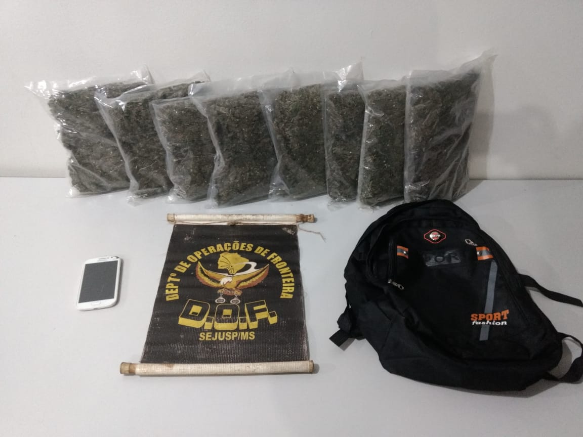 Ponta Porã (MS), 12 de novembro – Policiais do Departamento de Operações de Fronteira (DOF) apreenderam, na madrugada desta terça-feira, um adolescente de 17 anos de idade com oito volumes de uma substância entorpecente, conhecida como skank, com peso