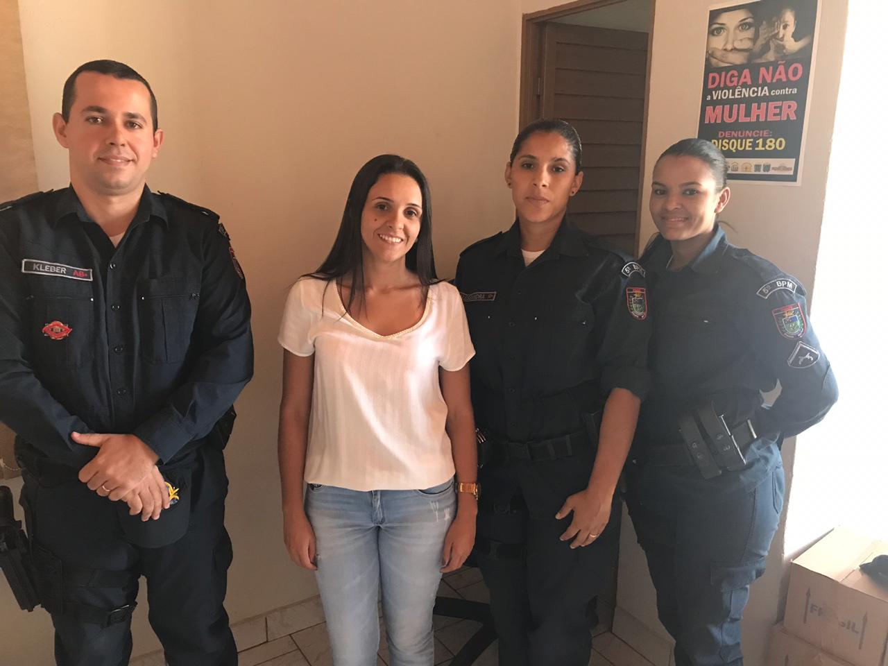 Coxim (MS): Nesta terça-feira (29), o comandante do 1º Pelotão PM de Pedro Gomes, 1º Tenente PM Kleber de Souza Oliveira, acompanhado da Soldado PM Raquel Ferreira Medeiros e da Soldado PM Alessandra Alves Ferreira, se reuniu com a Secretária Municipal