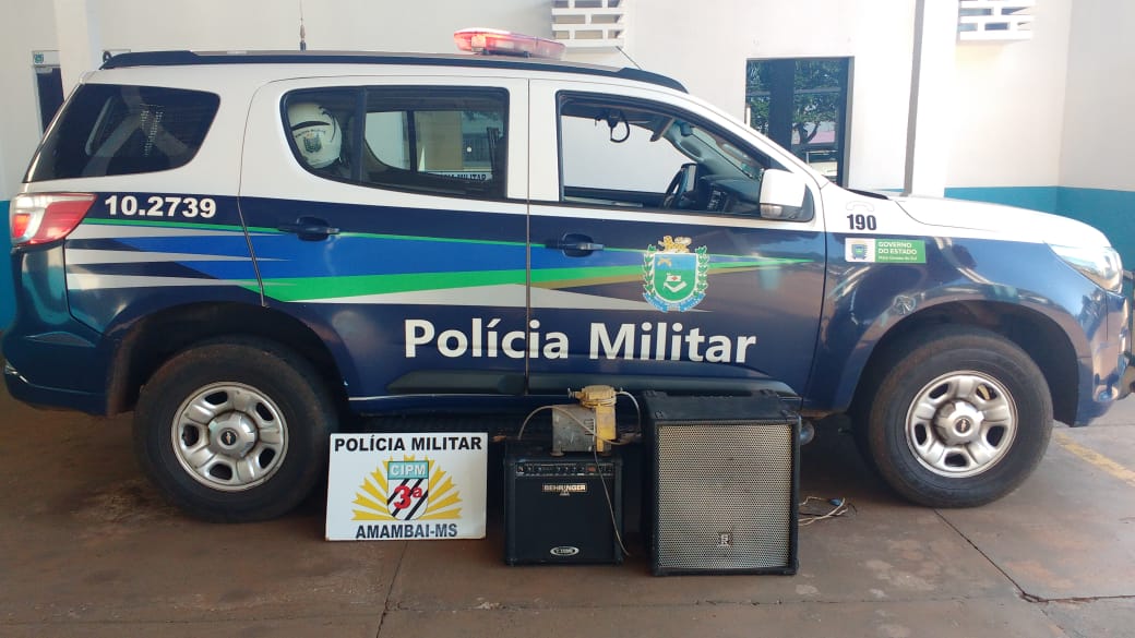 3ª CIPM Amambai – Na tarde deste domingo (27) uma equipe de Rádio Patrulha da Polícia Militar de Amambai recuperou duas caixas de som amplificadas e um compressor furtados no último dia 22 de uma igreja evangélica da cidade. A equipe policial