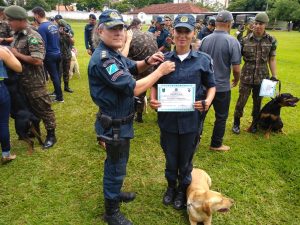 Nova Andradina (MS) – Os policiais militares lotados no 8º BPM de Nova Andradina, cabo André Luiz e soldado Vanessa, concluíram na sexta (30) o Estágio de Adestramento e Emprego de Cães de Guerra promovido pela 14ª Cia de Polícia do Exército em Campo Grande. O curso teve início no dia 05 de novembro e teve carga horária de 164 horas/aula.