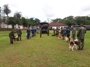 Participaram das instruções, 17 militares do exército, marinha e polícia militar, nas disciplinas: Teoria Cinófila; Enfermagem Veterinária; Psicologia Canina; Prática de Treinamento de Adestramento; Operações com Cães e Treinamento Físico Militar.